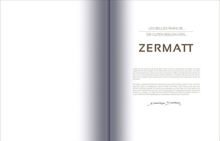 L’idée de ces portraits de Zermattois m’est venue en traversant le village. Je croise régulièrement des visages en me demandant qui se cache vraiment derrière. J’ai voulu les immortaliser pour laisser une trâce et donner un début de réponse aux lecteurs du livre qui se sont sûrement posé la même question. J’ai réalisé des portraits en noir et blanc de ces belles âmes au plus prés de leur environnement de travail pour mieux les identifier.
